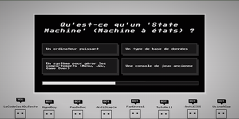 Pourquoi un trivia sur le thème "Échelle" ? Mon objectif principal était de créer un jeu où, à chaque fois qu'on répond à une question correctement, on montait une marche de l'échelle et à la fin du jeu, celui qui serait le plus haut dans l'échelle gagnerait. Les questions/réponses du trivia sont inspirées des enseignements de David (n'hésite pas à me dire s'il y a des trucs étranges).